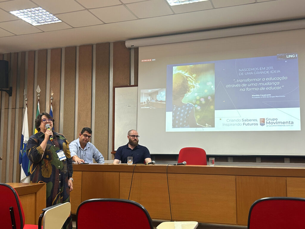 Marcela Machado, Gerente de Conteúdo Editorial e Pedagógico do Grupo Movimenta, também destacou a importância do evento para debater os desafios e oportunidades da interação entre humanos e tecnologia. “Participar deste evento nos permitiu discutir o impacto da tecnologia na educação e sua relação com a linguagem. Essa relação transforma práticas pedagógicas e desenvolve novas formas de expressão e compreensão, ampliando as possibilidades da expressão humana, tanto na produção artística quanto científica”, destacou.