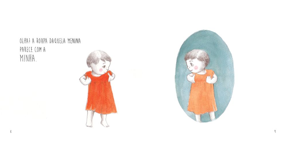 Quem é aquela menina ali, a menina do espelho do outro lado? Descubra junto com a menina do lado de cá. Nesta parceria, o escritor Leo Cunha e a ilustradora Thais Beltrame mergulham no mundo dos espelhos, onde o que se vê nem sempre é o que se espera. Numa grande brincadeira imaginativa a obra explora questões sobre a construção da própria identidade, do universo circundante, das relações e descobertas humanas desde tenra idade.