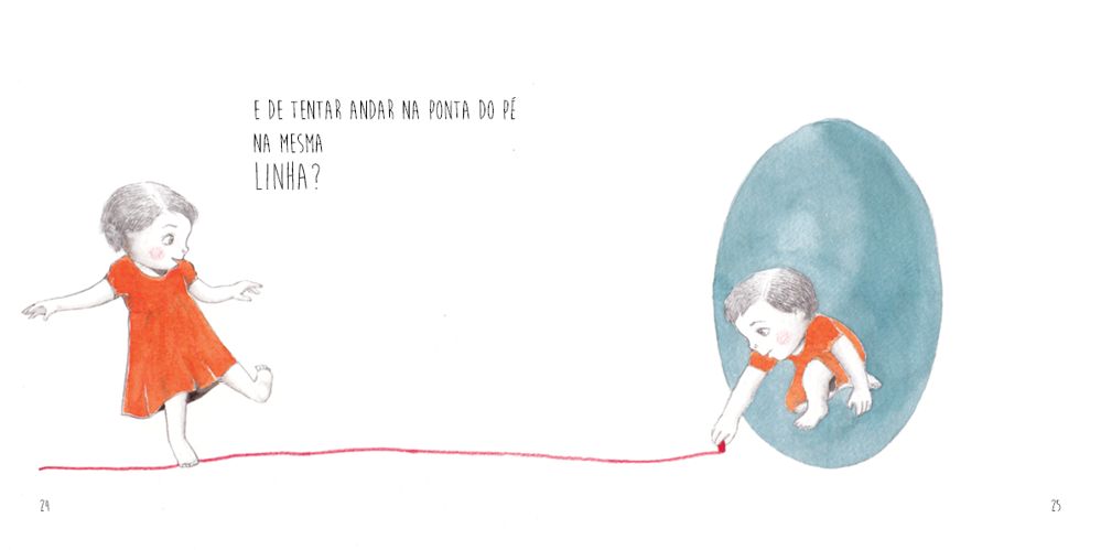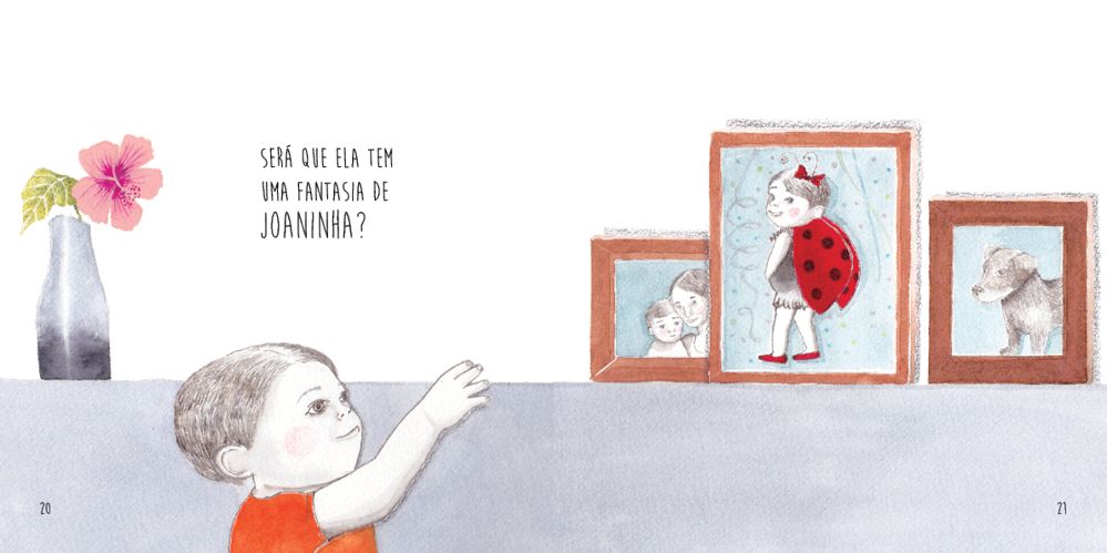 Olha! A roupa daquela menina parece com a minha.Será que ela mora aqui em casa, ou na vizinha?Ela escuta quando toca a campainha?Se eu sair daqui, ela fica sozinha?