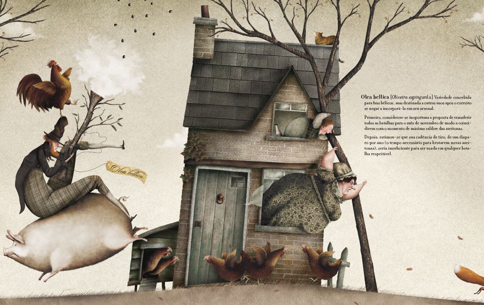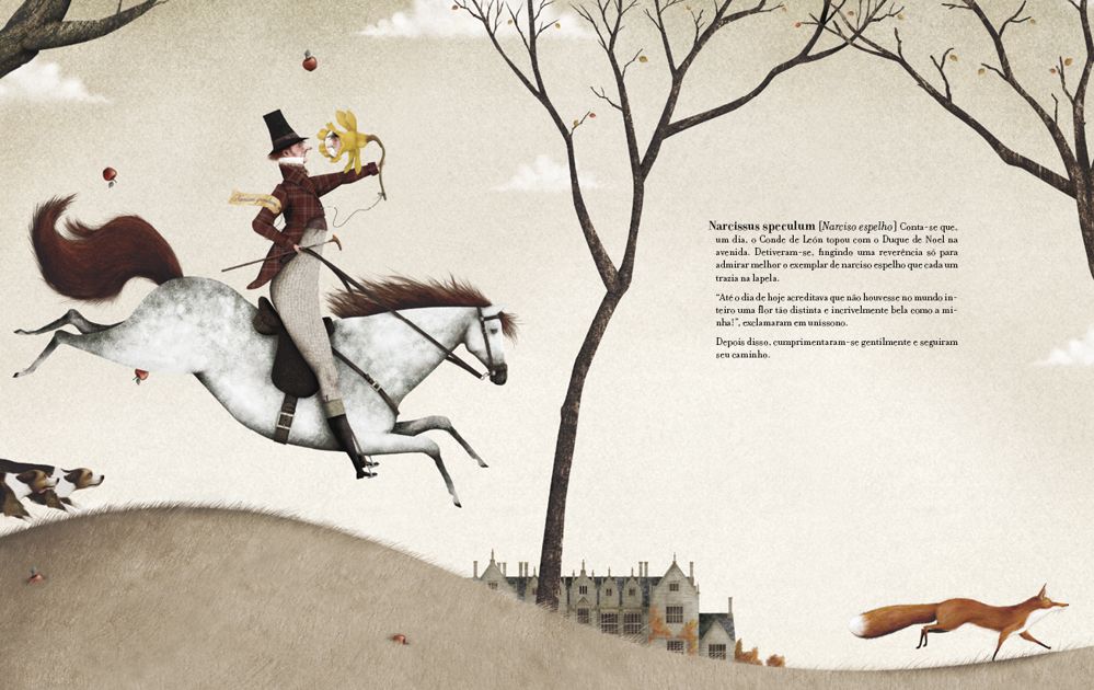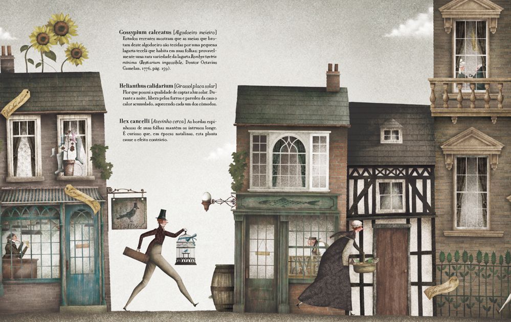Neste livro, o autor e ilustrador brinca com a formalidade do registro linguístico, que remete a enciclopédias antigas, sem, contudo, dificultar a leitura. A formalidade é uma pitada a mais de prazer e ironia. Mais que descrições de verbetes, Iban Barrenetxea constrói imagens descritivas, bem-humoradas e plenas de imaginação, com as quais dialogam ilustrações inteligentes que, ao expandir o movimento do desenho para além do limite da página, originam novas narrativas que se complementam umas nas outras.